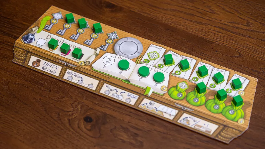 Når du har udbygget en handelsvej mellem to byer kan du vælge at åbne et handelskontor i en af byerne eller i stedet opgradere dit personlige spillebræt, hvilket kan give dig flere handlinger eller point.